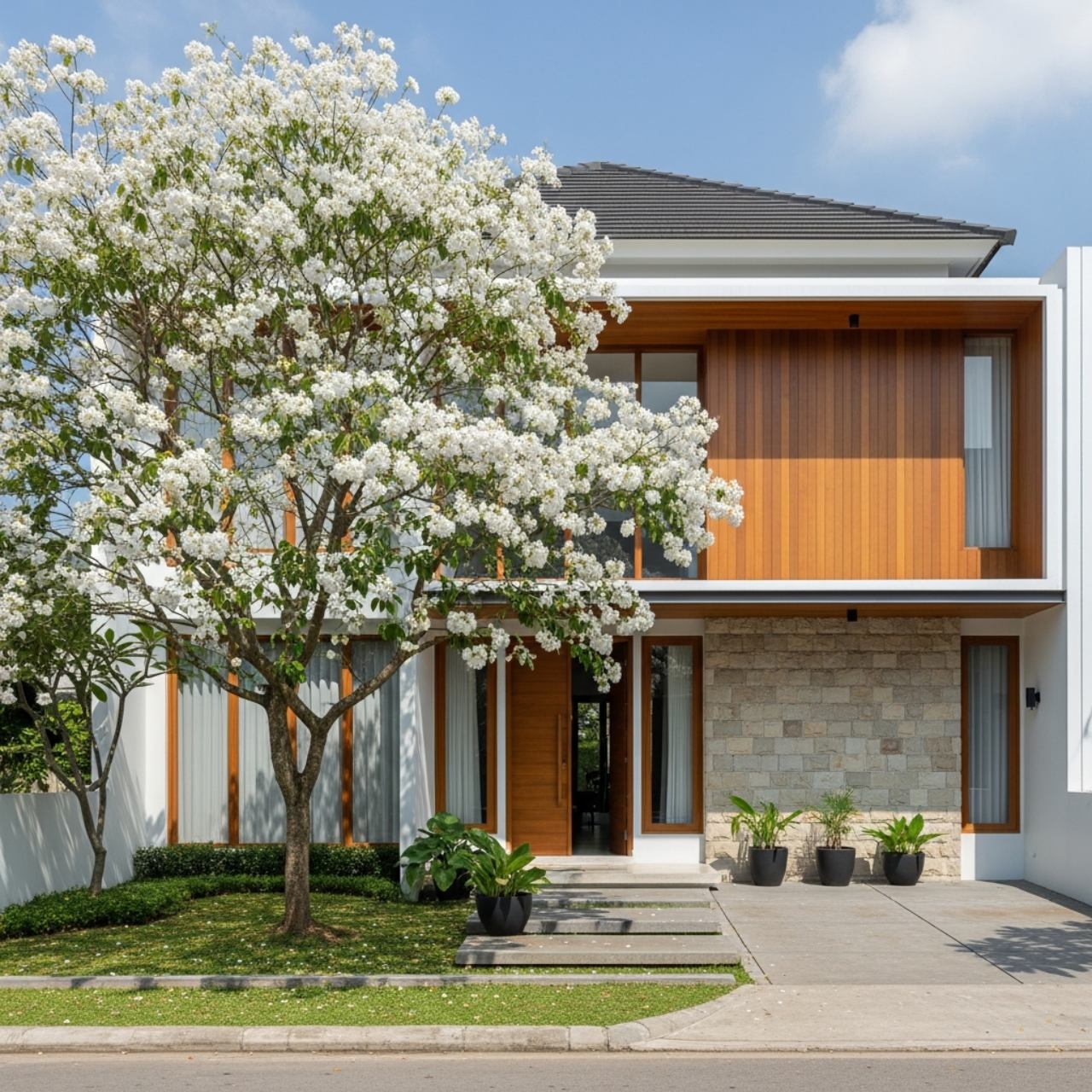 Tabebuya putih sangat cocok Sebagai Rumah bergaya modern atau skandinavia.