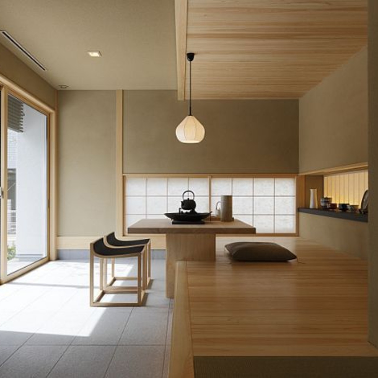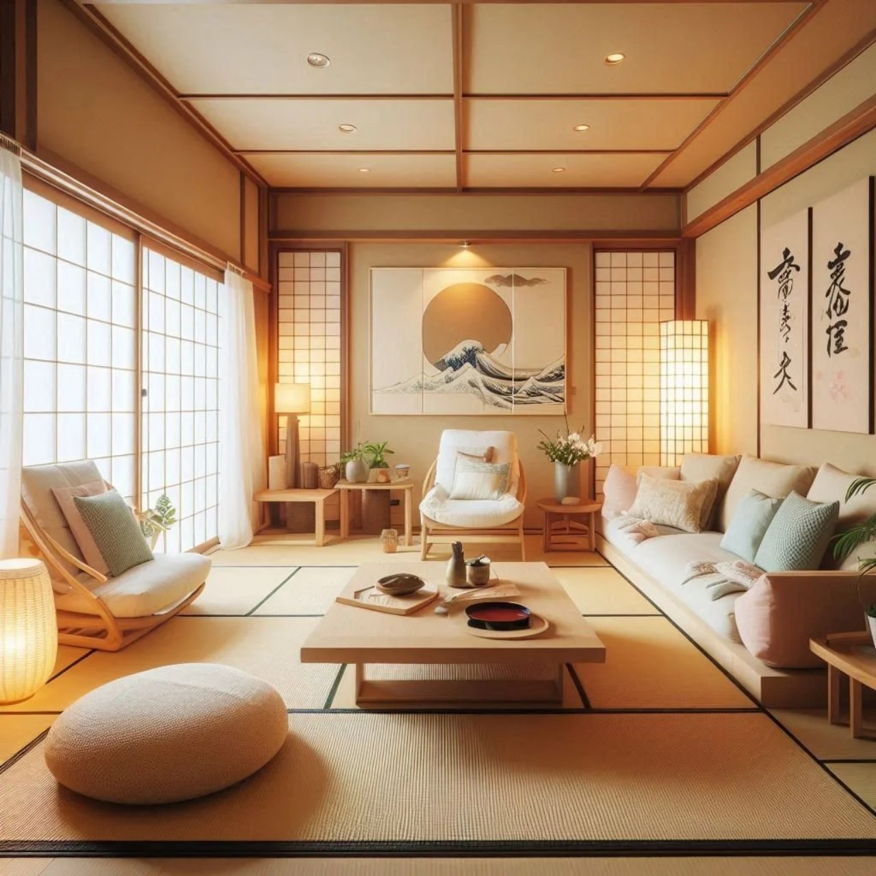 - Material alami: Penggunaan kayu, bambu, Alattulis shoji, dan tatami menjadi ciri khas yang Memperkenalkan kehangatan.