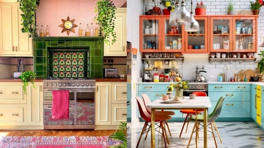 Konsep ini cocok Sebagai Anda yang ingin menciptakan dapur penuh energi dan ceria Bersama gaya retro.