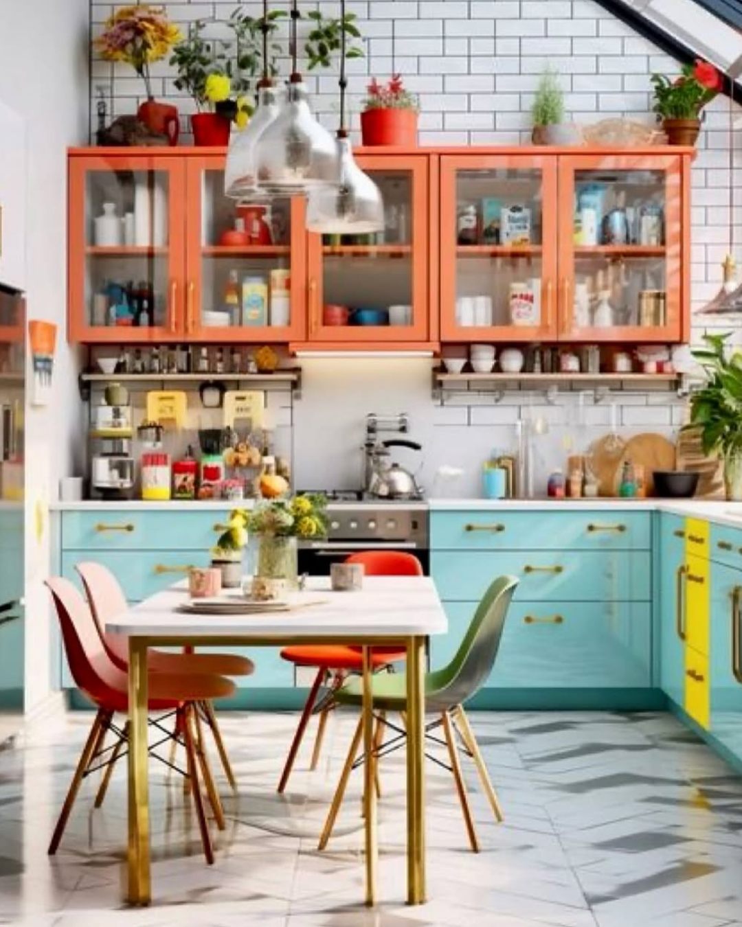 Pemilihan warna-warna cerah, motif berani, hingga dekorasi yang out of the box membuat dapur terasa hidup dan penuh karakter.