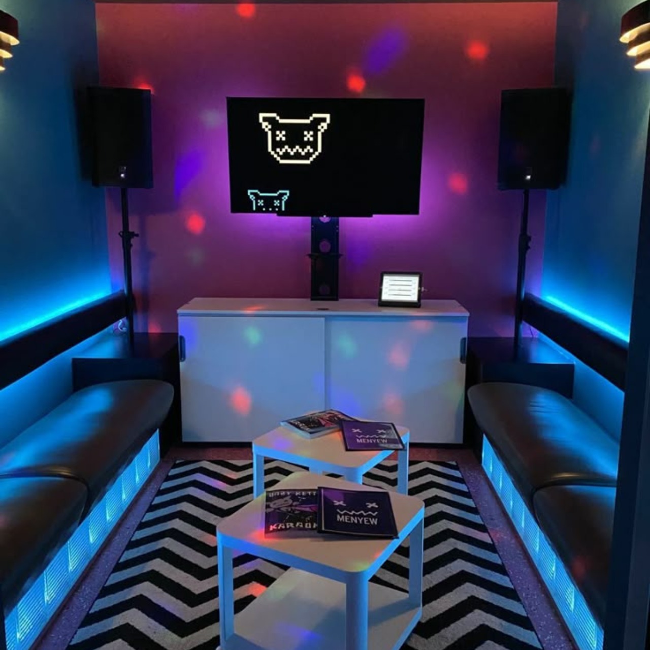 Ruang karaoke futuristik seperti ini cocok Sebagai Anda yang ingin suasana energik.
