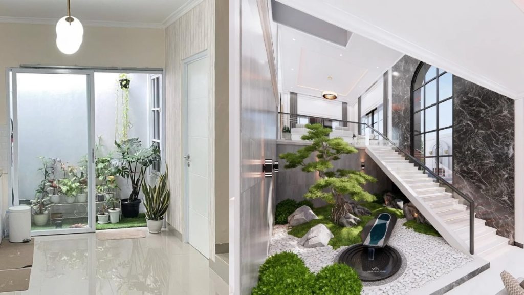 Biasanya, taman ini memanfaatkan cahaya alami Di skylight atau jendela besar serta diisi tanaman yang mudah dirawat, bebatuan, atau elemen dekoratif sederhana.