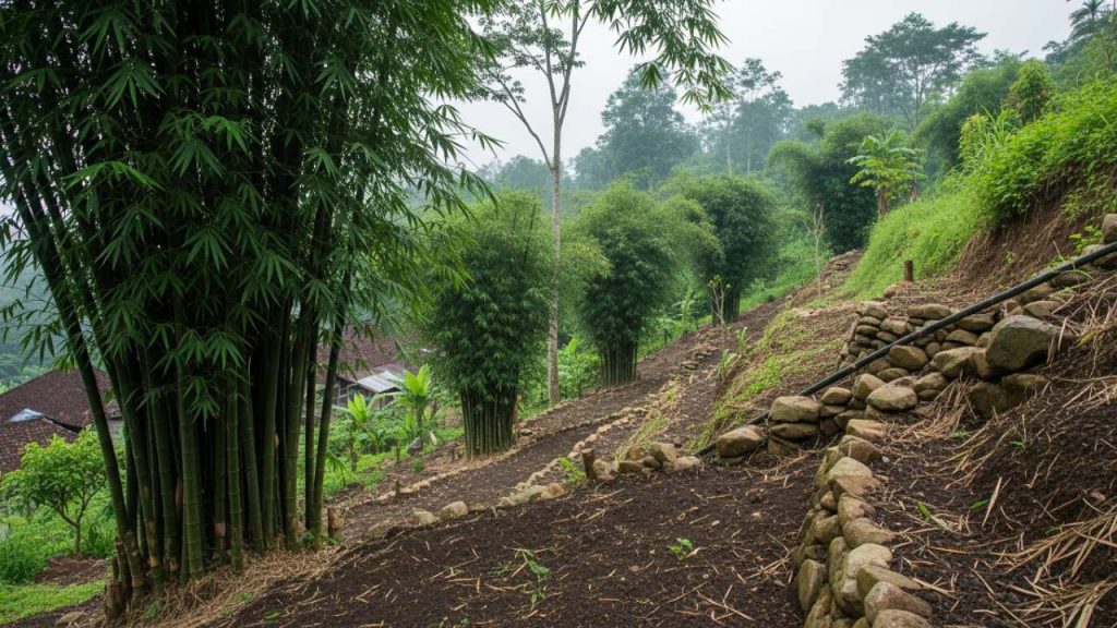 Bambu petung dikenal sebagai salah satu jenis pohon penahan longsor paling efektif Ke lahan miring.