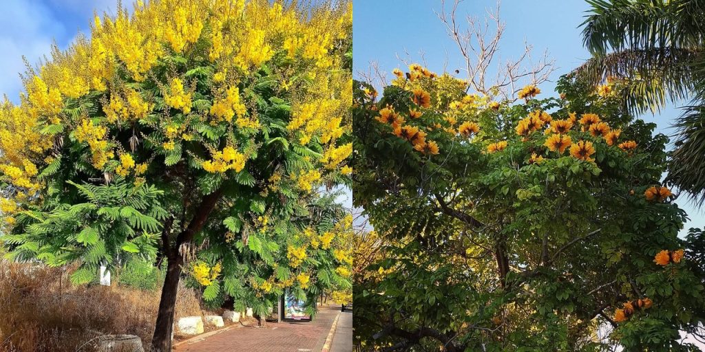 Mulai Di pohon besar berbunga kuning seperti tabebuya dan soga, hingga jenis yang lebih kecil seperti kenanga dan spathodea kuning, semua menawarkan keindahan alami yang membawa suasana cerah dan hangat.