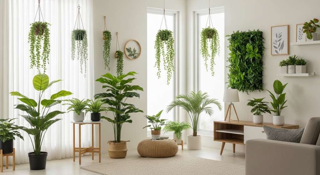 8. Kombinasi Tanaman Artifisial dan Dekorasi Alami