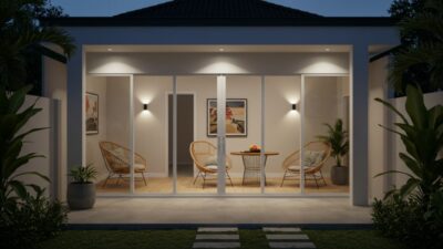 Penggunaan pintu kaca bisa membuat area mushola terlihat lebih terang.