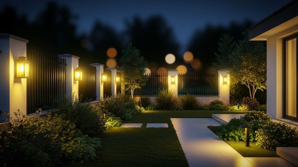 Kamu bisa menempatkan lampunya Ke Di pintu taman atau sepanjang dinding pagar Didepan Rumah.