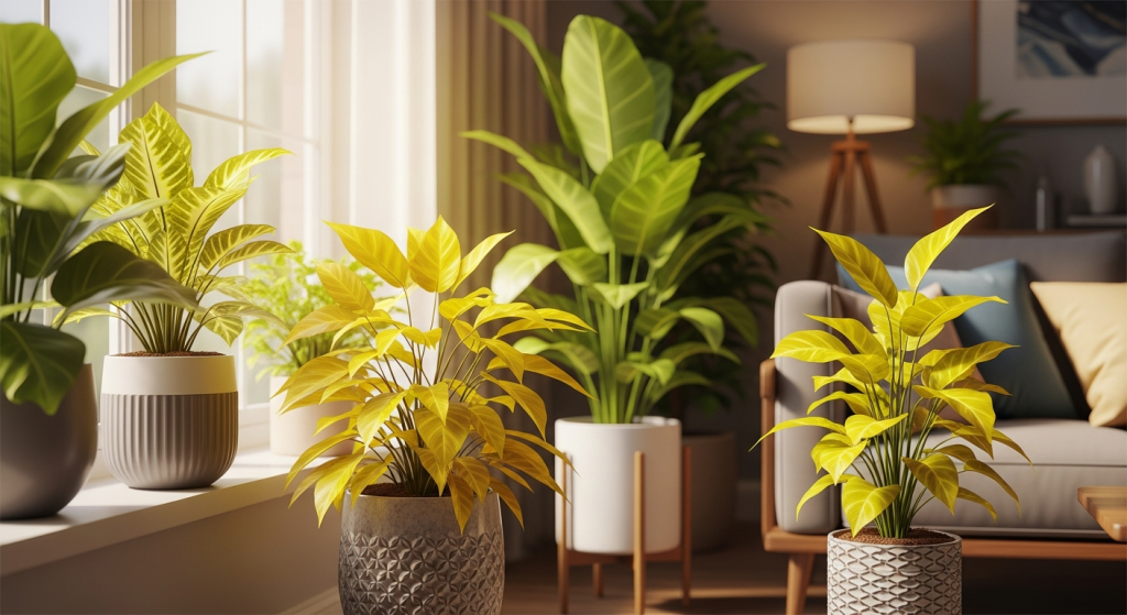 Solusi Untuk membuat Tempattinggal Kompleks terasa lebih segar dan hidup, adalah Bersama menempatkan tanaman hias berdaun kuning.