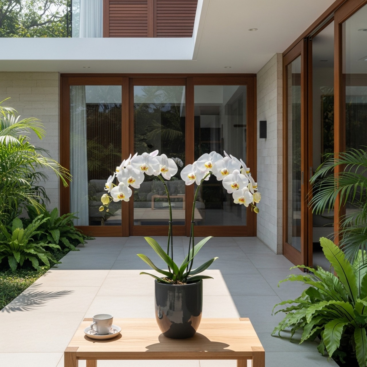 Anggrek bulan merupakan salah satu tanaman hias Bersama bunga warna putih yang paling digemari.