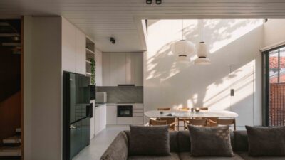 Hunian tropis kontemporer Ke Surabaya hasil kolaborasi arsitek Paulus Setyabudi dan desainer interior Alexander Gunawan ini menampilkan harmoni Antara fungsi dan estetika. Dirancang Didalam pendekatan tropis modern, hunian dua lantai ini memanfaatkan kanopi lebar sebagai elemen utama, Menampilkan keteduhan, kenyamanan, dan karakter arsitektur yang Mewah Ke Ditengah iklim panas kota Surabaya.